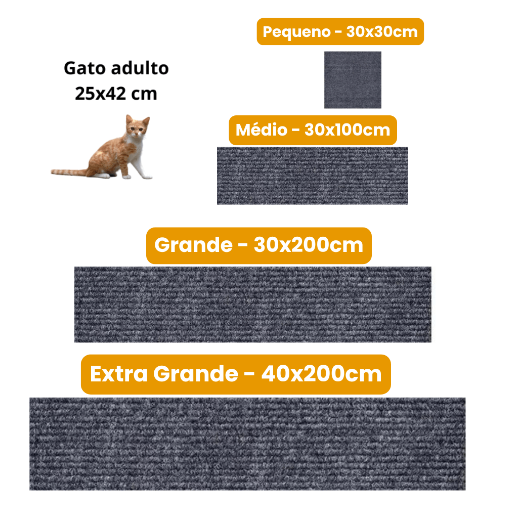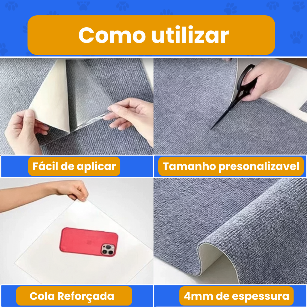 O Carpete Adesivo Protetor Antiarranhão para Gatos™ cria uma barreira protetora resistente que impede que as unhas do seu gato danifiquem superfícies, protegendo sofás, poltronas, camas, cadeiras, cabeceiras, laterais de móveis e paredes. Seu material foi desenvolvido para suportar o contato frequente das garras, reduzindo drasticamente riscos, rasgos e desgaste.